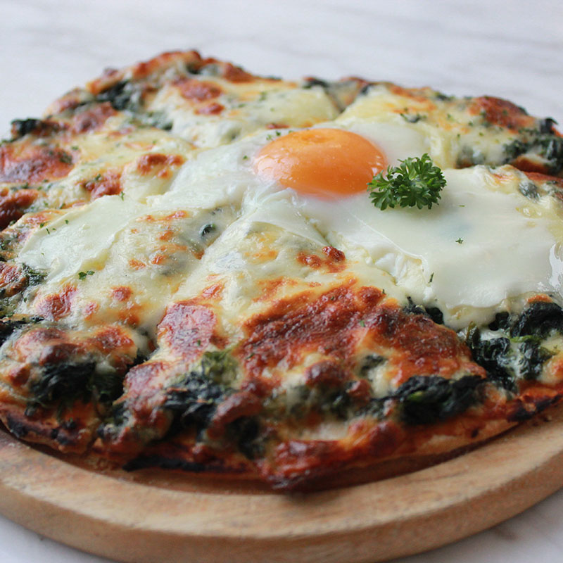 Moving further from Thai territory, the highly recommended Italian dish is Spinach Pizza, a thick soft dough mixed with spinach and runny poached egg, yet topped with gooey and molten cheese, creating a great flavor combination. Pizza and Cheese lovers are strongly encouraged to try this.