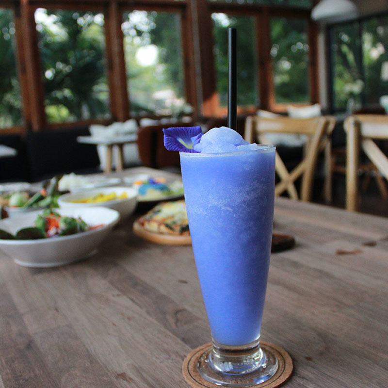 Lastly, refresh your meal with a gentle sweetness of the butterfly pea smoothie.