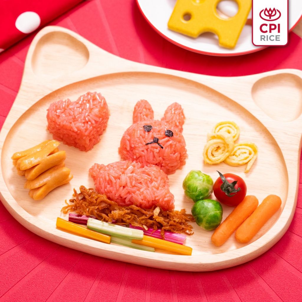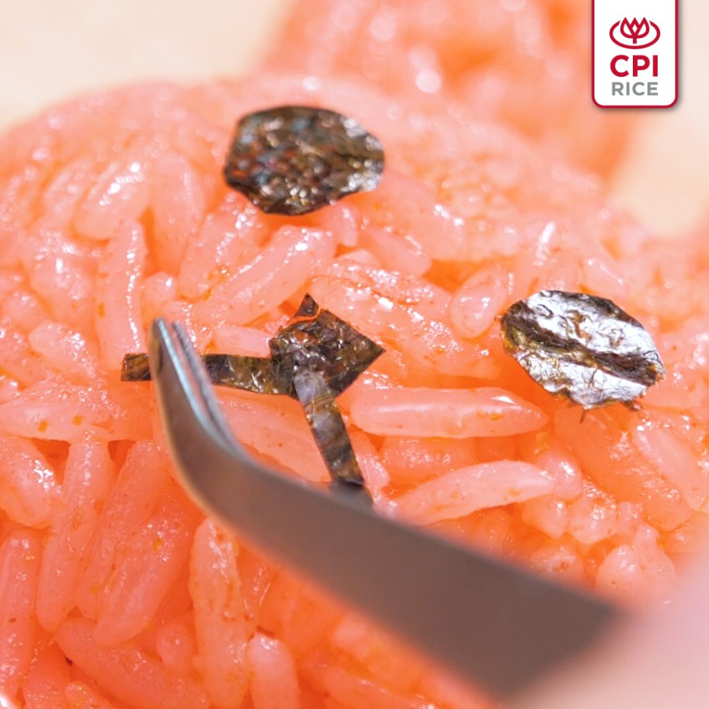 2. Add Jasmine rice, Yentafo sauce, sugar and salt. Stir-fry well, then set aside.