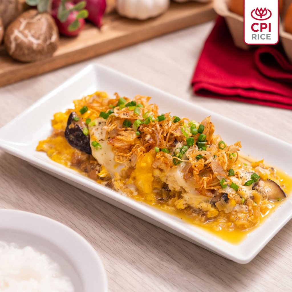 6. Wait until the eggs begin to set. Serve with fried shallots and sliced spring onion.