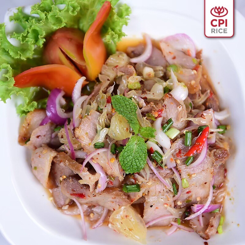 Refreshing your sensations with the ultimately recommended menu as Grilled Spicy Pork Neck with Pomelo Salad – this menu stays the true Thai-style original taste. The secret recipe of this menu is a using a juicy sweet-and-sour pomelo plus with the smoking grilled pork. Mixing the spicy seasonings with these ingredients create an exceptional taste. This menu is one of the popular choices of this