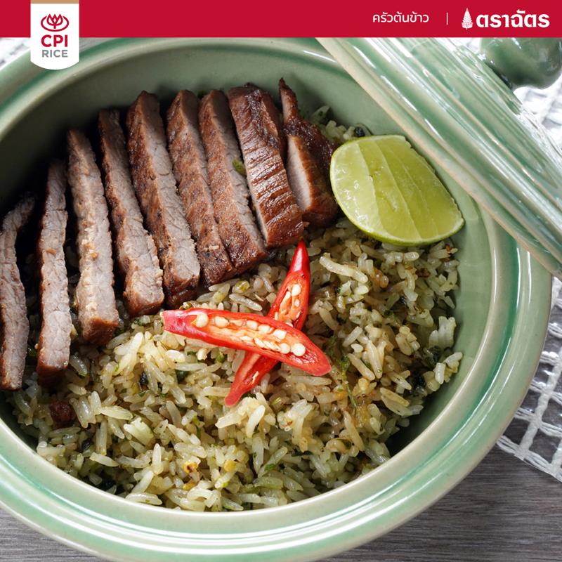 Emerald Fried Rice is known as one of the signature menus in this place. Stirred with 100% Fragrant Jasmine Rice, the grainy rice beautifully comes out. The emerald color is made by mixing the rice and Thai herbs until they mix well. It does not look tasty only but also smells fragrant by Thai herb scent. The rice has a little bit of spiciness that it needs to be eaten with the fried beef. The chef uses beef’s hind leg because the meat is soft and no fat. Squeezing lime juice into the rice to add some sour taste, you will find the taste is perfectly combined. If you are not a beef fan, you can either choose a pork version.