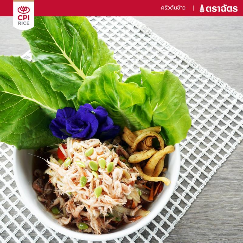 Another signature dish is Tum Rimraue Klua Tonkow. It lies on a conceptual idea of bringing backyard veggies garden to crush with fermented fish sauce, topped with small shrimps and crispy pork skin. The taste is so flavorsome that you cannot force yourself to stop eating it.